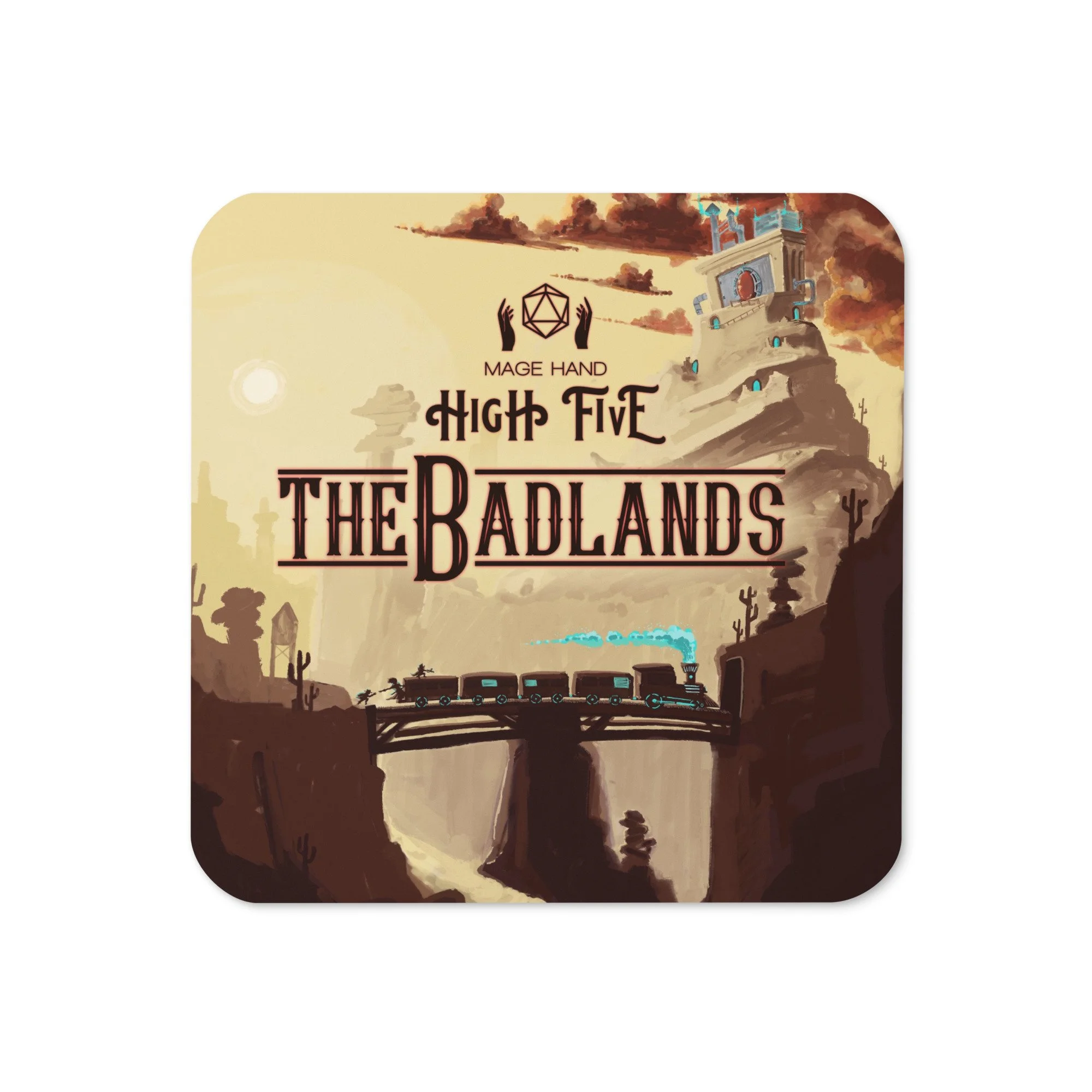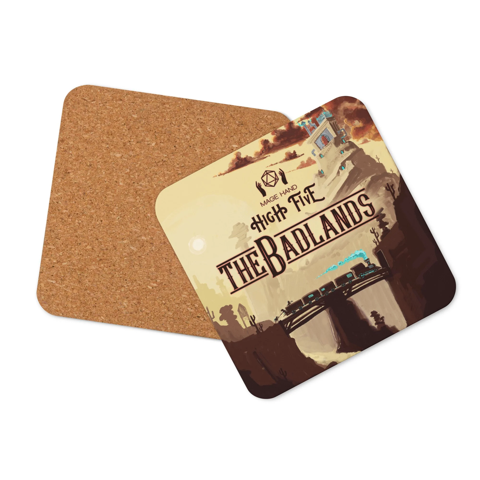 Set your mugs upon the hot desert sun as you listen to the latest episode of your third-favorite actual play podcast! This cork-back coaster is a perfect match for your favorite mug! The coaster is waterproof and heat-resistant, designed to last a long time.